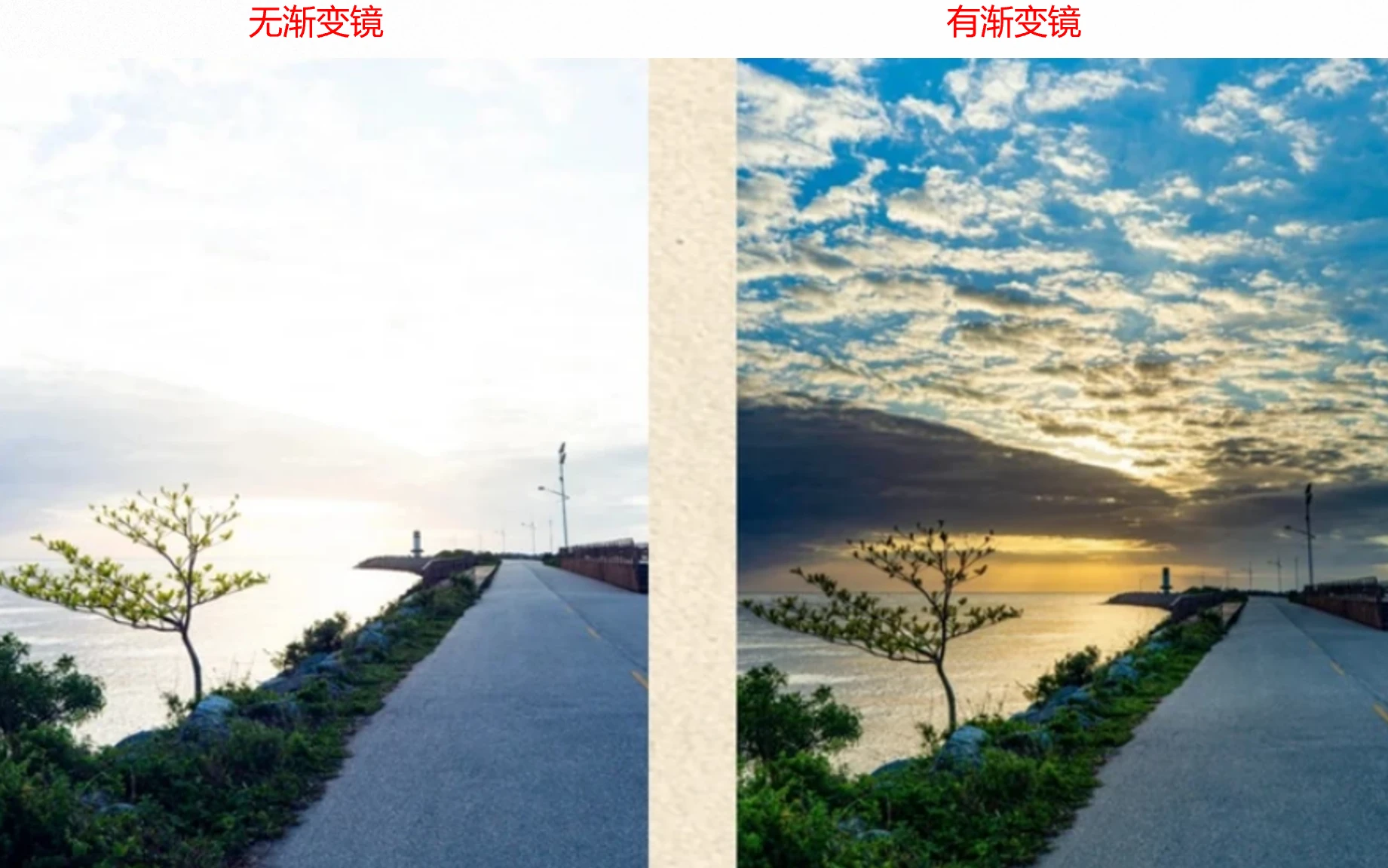 如下图,白天晴空下拍摄,使用蓝色渐变镜,可以使天空看起来更蓝更晴朗。