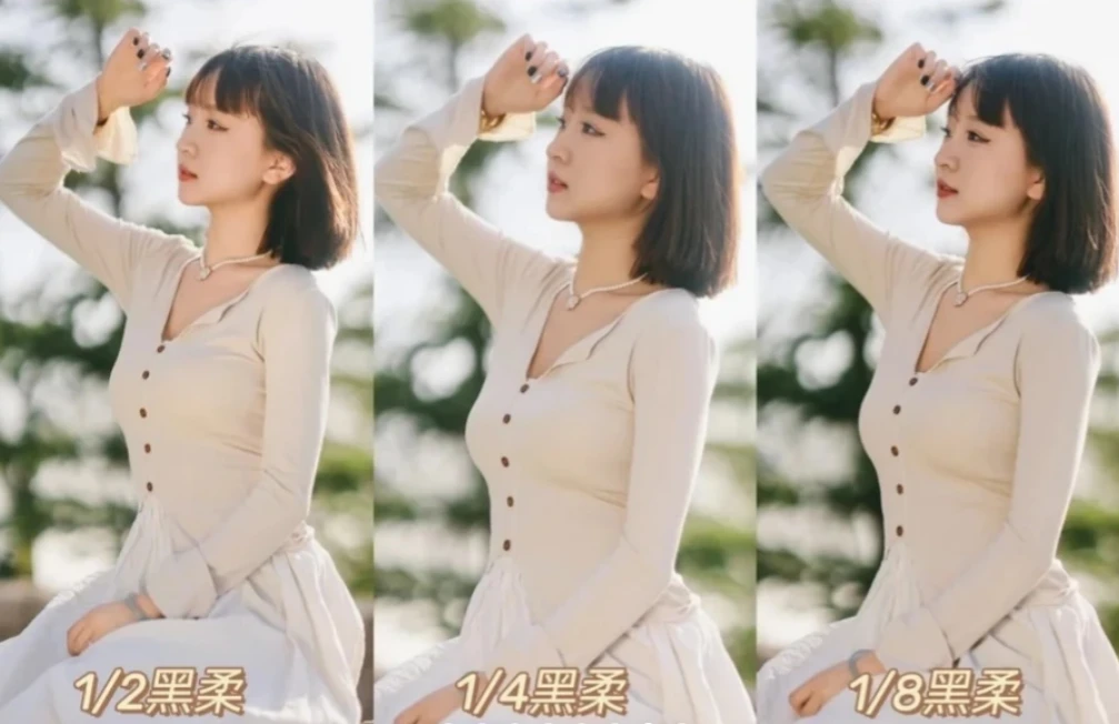 黑柔有1/2、1/4、1/8 这些规格,分母数值越大,柔光效果越好,对画面中的高光柔化越强,暗部过渡也会随之更加柔和。