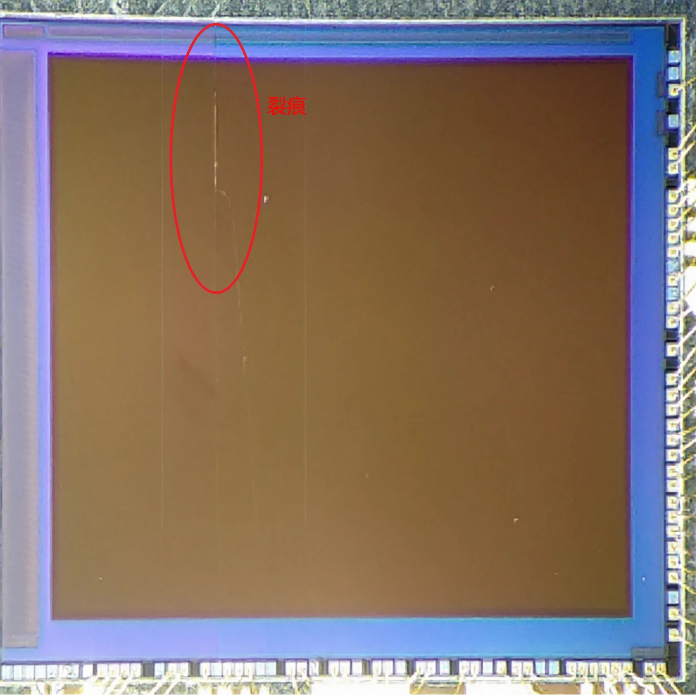 高倍显微镜下确认sensor存在开裂现象。