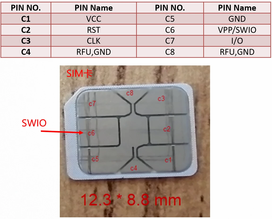 在支持SWP协议的SIM卡和手机中,C6引脚被重新定义为SWIO(Single Wire Protocol I/O)接口,专门用于传输SWP协议的数据。