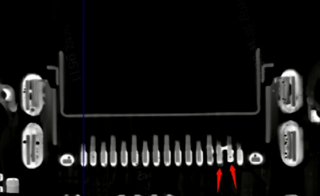 安排X光,一下就发现问题,明显发现Type-C焊脚处有异常,管脚之间出现短路。