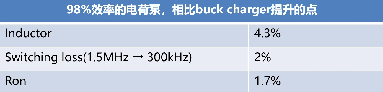业界的看法是,在功率密度的表现上,电荷泵方案是Buck charger的300倍!简直是小个子却扛起了大旗。