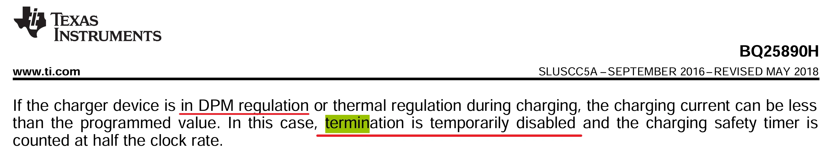 需说明的是,充电IC处于DPM环路控制时,是不会截止的,只有退出这个DPM控制才可以截止,datasheet中说的很明白。