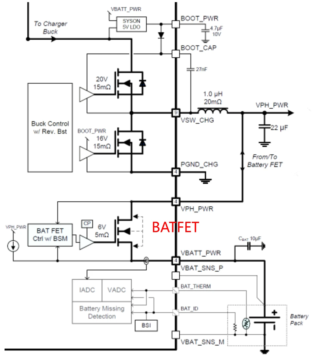 如果手机没有使用平台的充电IC,而是使用外置的充电IC(比如TI的充电芯片),,要把QON脚接到开机键上,开机键拉低QON,则会使BATFET导通,充电IC退出ship mode。