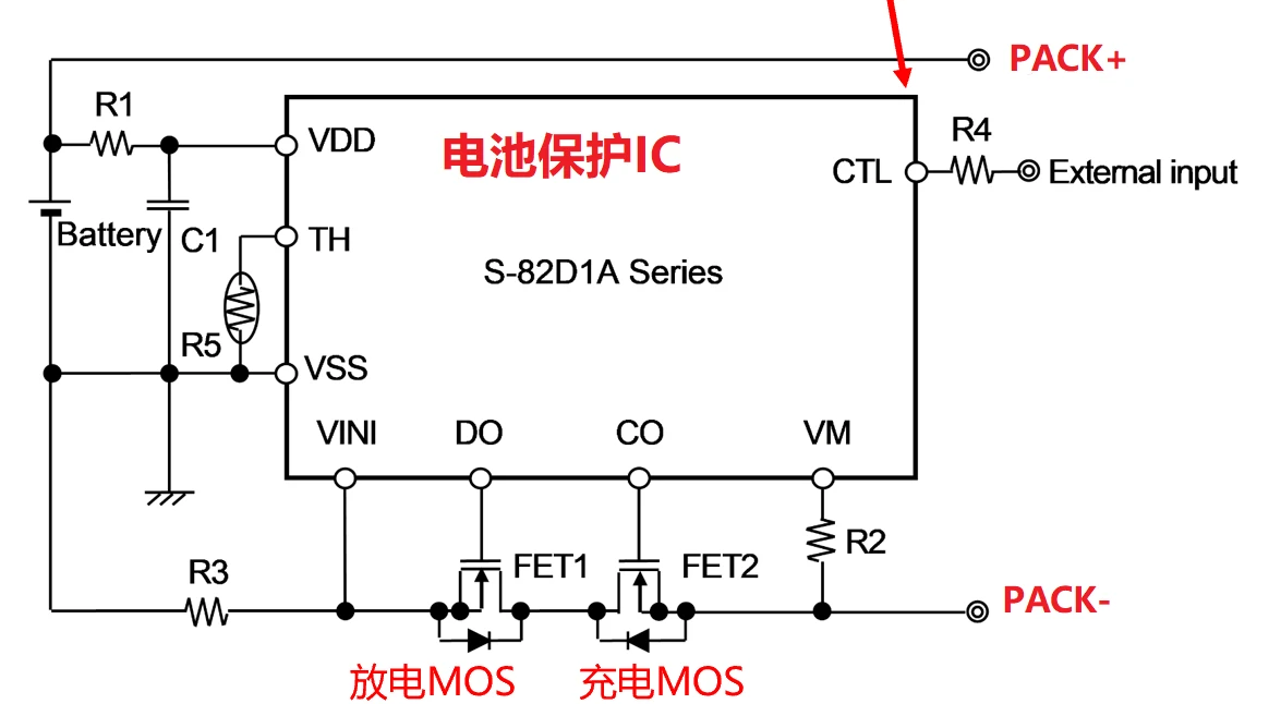- 当CTL端子接高电平时,保护IC会关断充电MOS和放电MOS,进入充放电禁止状态。