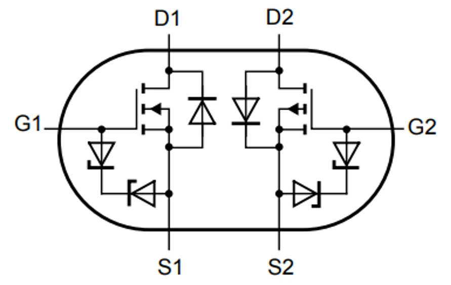 为了降低成本和减小布局面积,业界有专门的芯片内部同时集成NMOS和PMOS,如Nexperia的PMCXB900UE,内部框图如下图所示,可用于该场景。