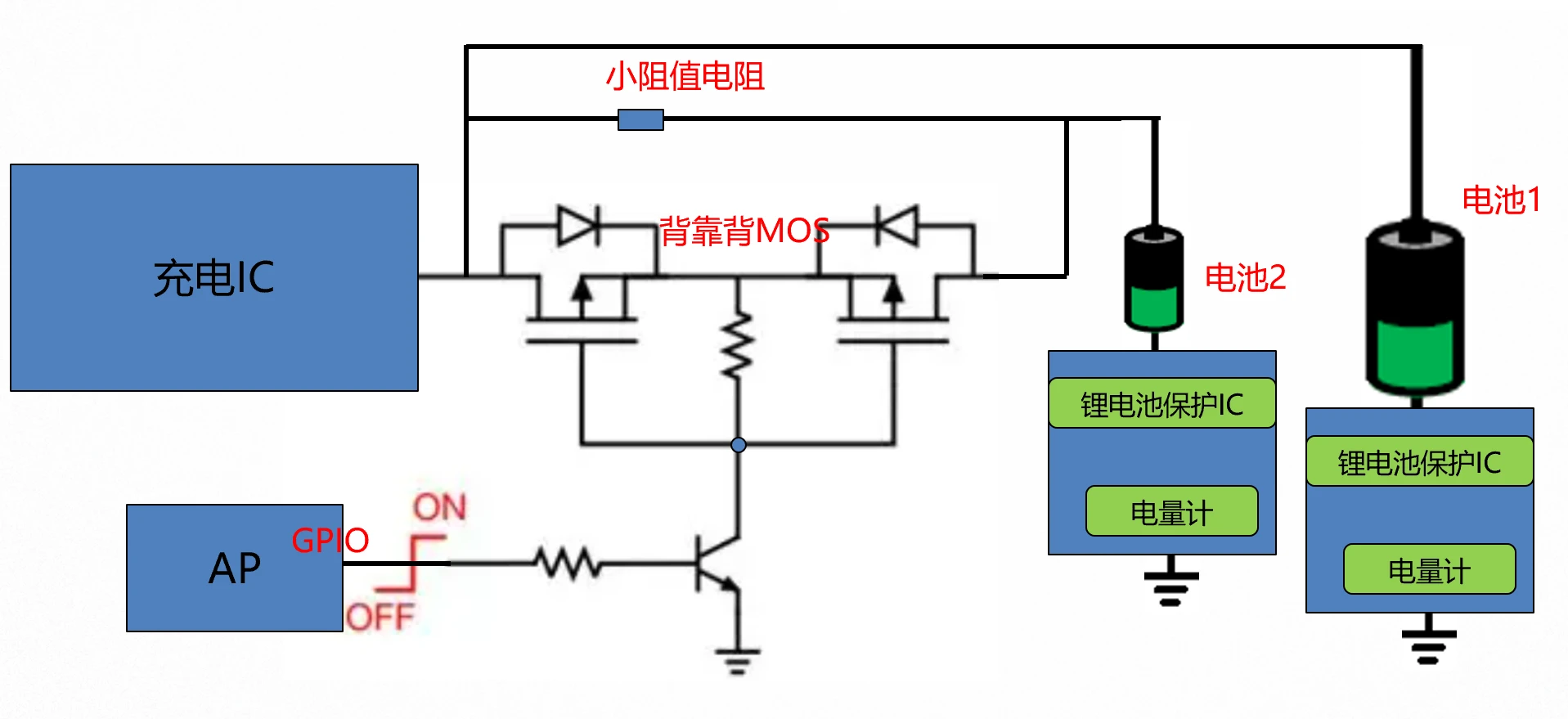 因此,针对容量不等的双电池系统,在单充电IC的情形下,最好能加上一道控制,使其充电通路的通断可由AP控制,让两块电池之间不互相伤害,皆能实现各自的预期。