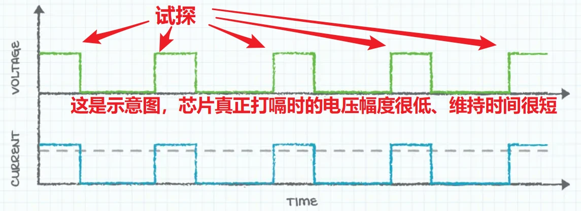 - 休眠,接下来电路进入一个固定的休眠期(通常为几百毫秒),即打嗝周期。