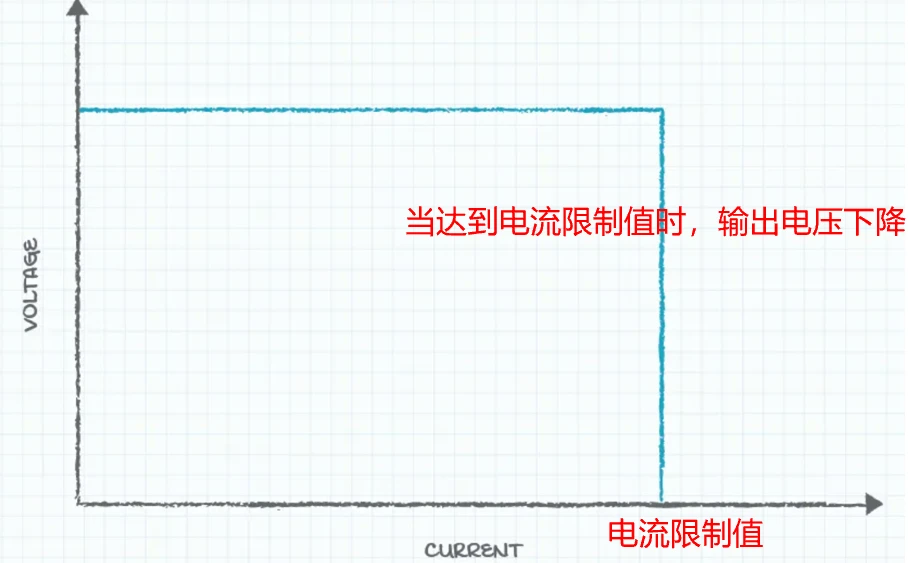 实现方法是:采集输出电流,并在达到电流限制时,不再维持输出电压稳定,而是降低输出电压,由此保持电流为限制值,此时的输出电压其实是电流限制值乘以负载阻抗。