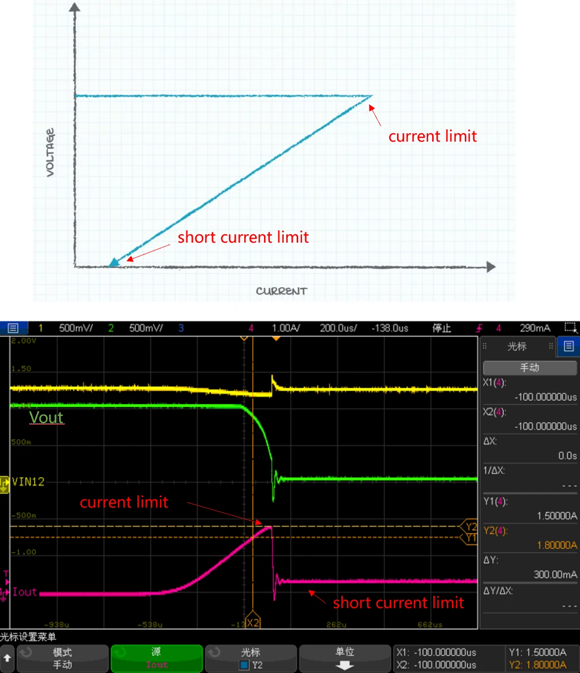 而折返限流是对恒流限流的一种改进,旨在解决短路时功耗过大、发热的问题。