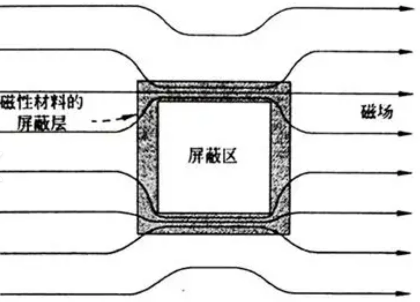 我们还可以给磁干扰穿一件衣服。如下图,在磁场中,磁导率不同的两种介质,它们的交界面上磁场会发生变化(磁感应强度B的大小和方向都会发生变化)。因此我们可以用磁屏蔽材料变更磁场的方向和大小。