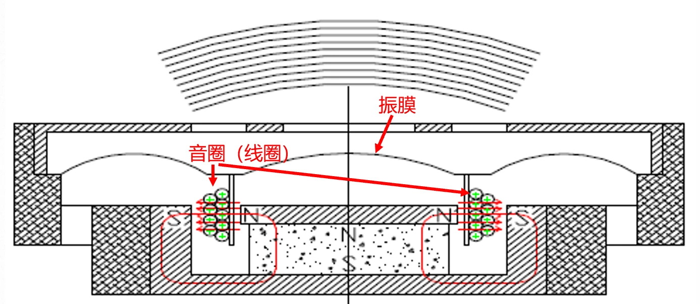 它们的工作原理是:电信号注入一个音圈,而音圈是置于一个永磁体磁路的磁隙里。当音圈受到变化的电流驱动时,其上磁场也成为一个极性快速变化的交变磁场。音圈产生的交变磁场,与听筒内永磁体提供的恒定磁场发生相互作用。这两个磁场会瞬间产生排斥力或吸引力。就使得音圈在永磁体的磁场中,按照音频信号的频率进行机械运动。音圈振动带动膜片振动,膜片振动引发声波,由此产生声音。