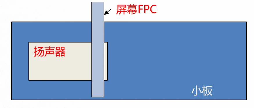 某项目,在小板上,屏幕FPC与扬声器模组在垂直投影方向上有重叠。屏幕在亮屏时,耳朵靠近扬声器,能明显听到异响,并且确认异响来自扬声器,而非FPC振动。