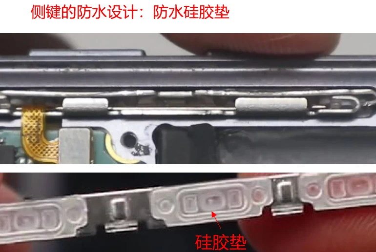 下图简单罗列了按键、听筒、充电口和SIM卡等防水机制,想来想去无非这些伎俩而已。