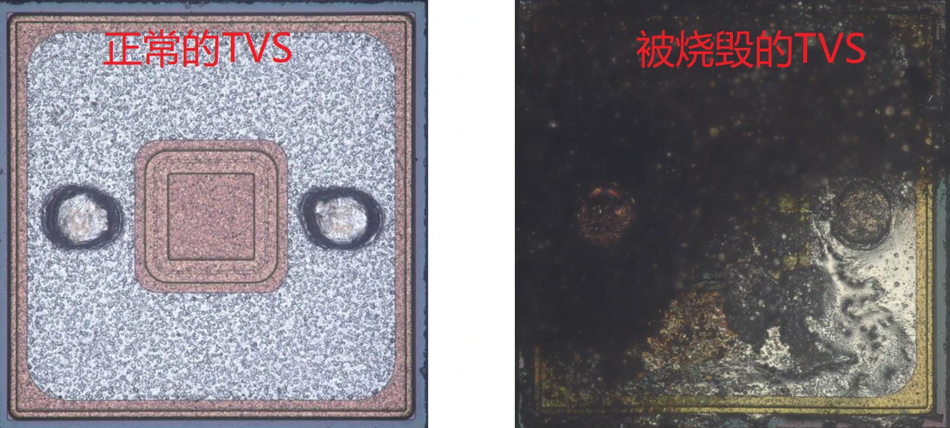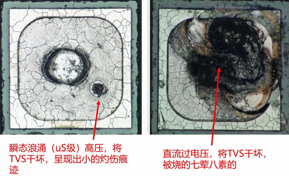 - 过应力事件的能量过于巨大且迅速,可能直接将TVS管内部的连接线或PN结汽化、炸裂,直接给干开了。