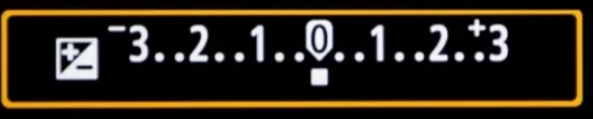 在自动模式下,游标通常位于0(相机认为的“正确”曝光)。