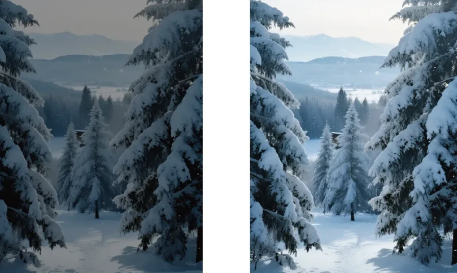 - 白色场景,比如雪景,相机会认为:“哎呀,太白了,我得把它压暗成灰色。”结果雪变成灰雪,不通透。