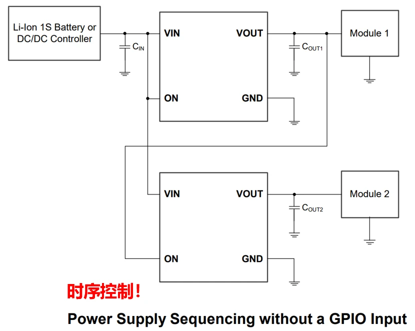 1、可满足上电时序方面的需求,控制各个模块的上电顺序,上电谁先谁后,开关说了算。为了减少控制脚的使用,可以做成级联的形式,如下图。