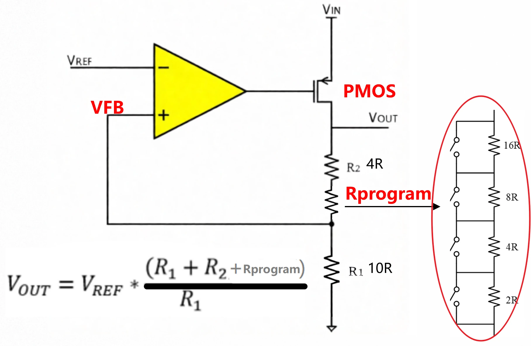 可编程LDO芯片的核心在于玩转反馈网络的分压比,或者改变基准电压,从而改变输出电压,具体可以归纳为以下几种方案: