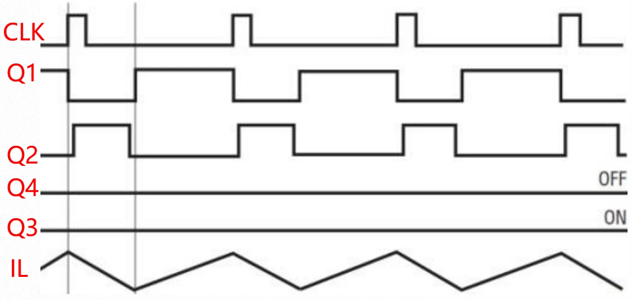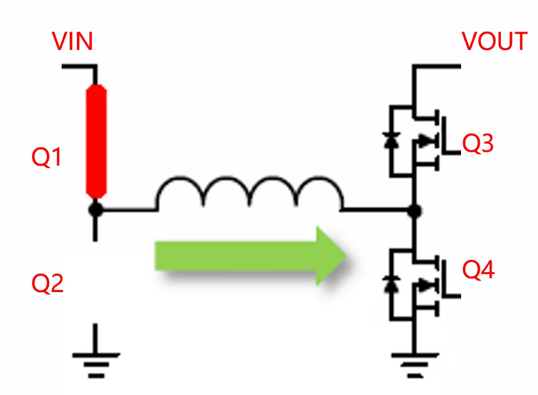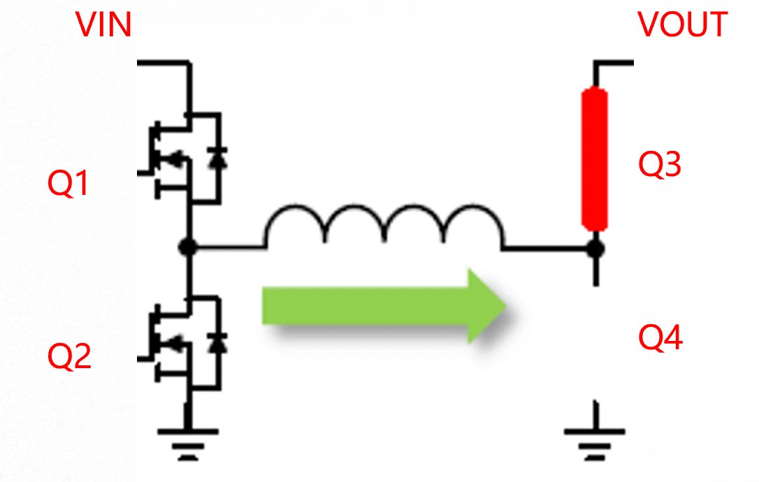 - Q1和Q2以Buck变换器的方式交替开关,Q1为上管(控制管),Q2作为下管(续流管)。