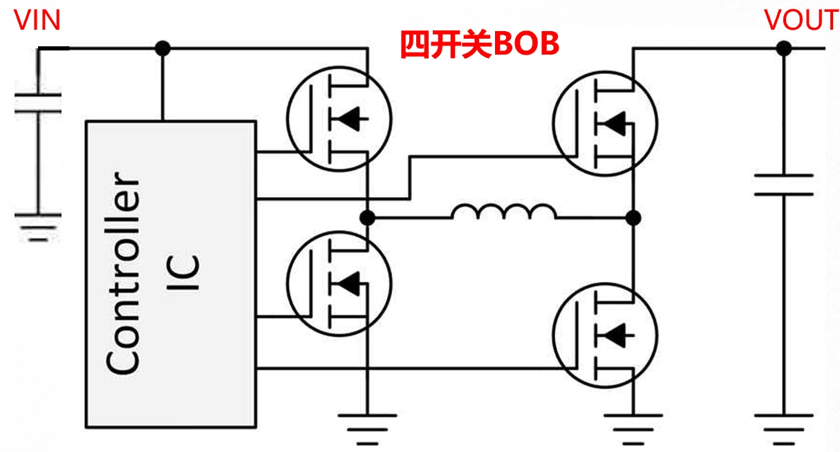 四个开关管搭配控制器才能实现完整的BOB功能,业界很多四开关BOB控制器,如TI的LM5175,更为详细的介绍可以查阅datasheet。