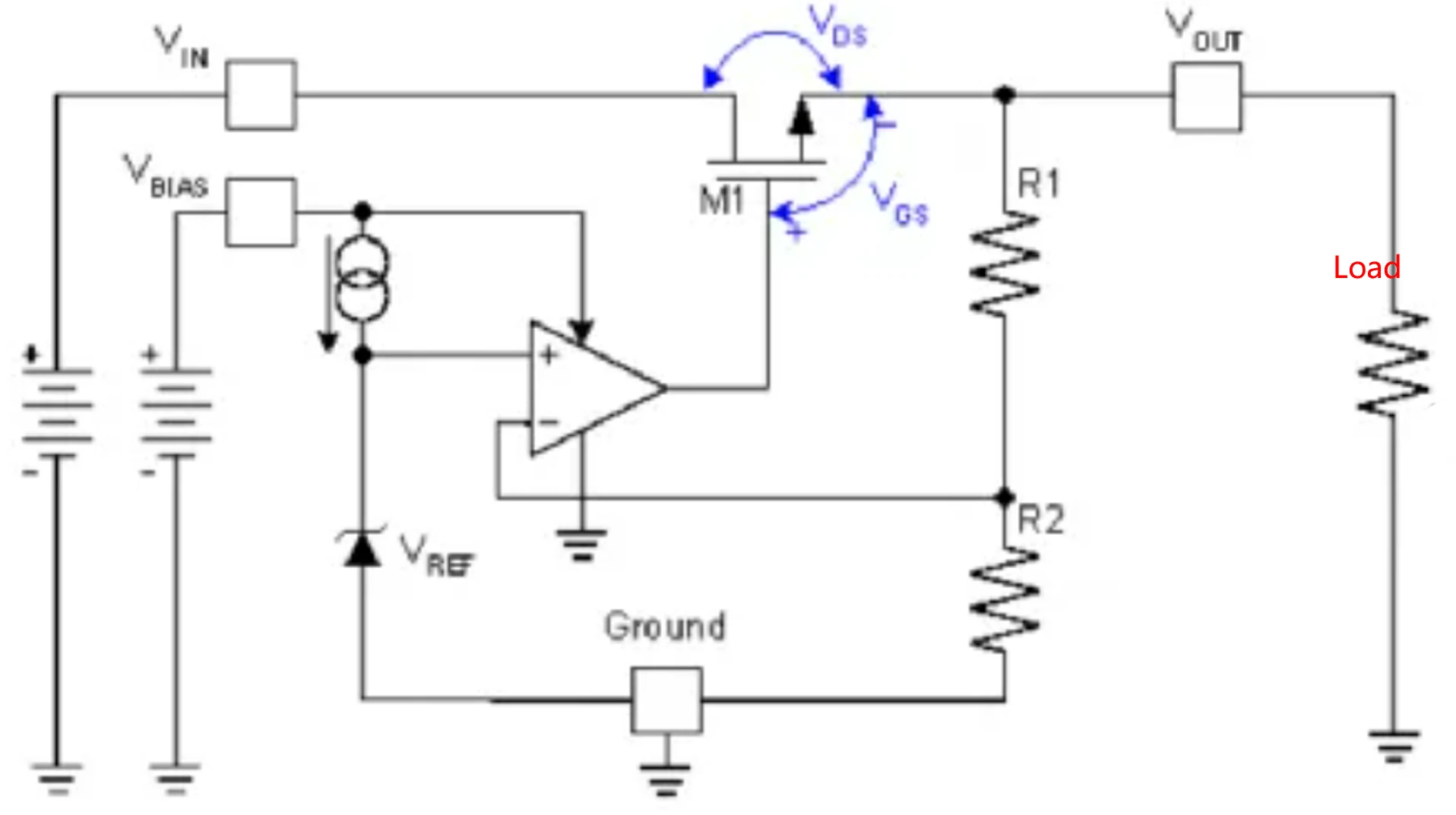 当LDO的负反馈环路垂死病中惊坐起,终于开始跟上节奏时,MOS的栅源电压会从VGS1增加到VGS2,通过负反馈将VDS2带到VDS3(比 VDS1 略低一点),输出电压终于近似回到了初始电压。
