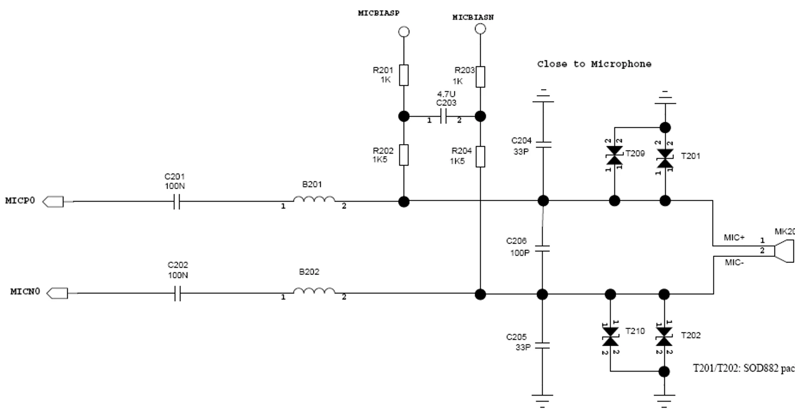 MICBIASP和MICBIASN提供偏置电压,MIC偏置电流流向为从MICBIASP到MICBIASN,而不用公共的GND,主要是因为GND干扰太大,就像菜市场一样吵闹。