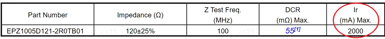 - 额定电流:尤其在功率线上应用时要注意。额定电流指在正常工作条件下,磁珠能够持续安全通过的最大电流,规格书中都有写明。在选择磁珠时,应确保电路的最大电流低于磁珠的额定电流,并且留一些余量设计。