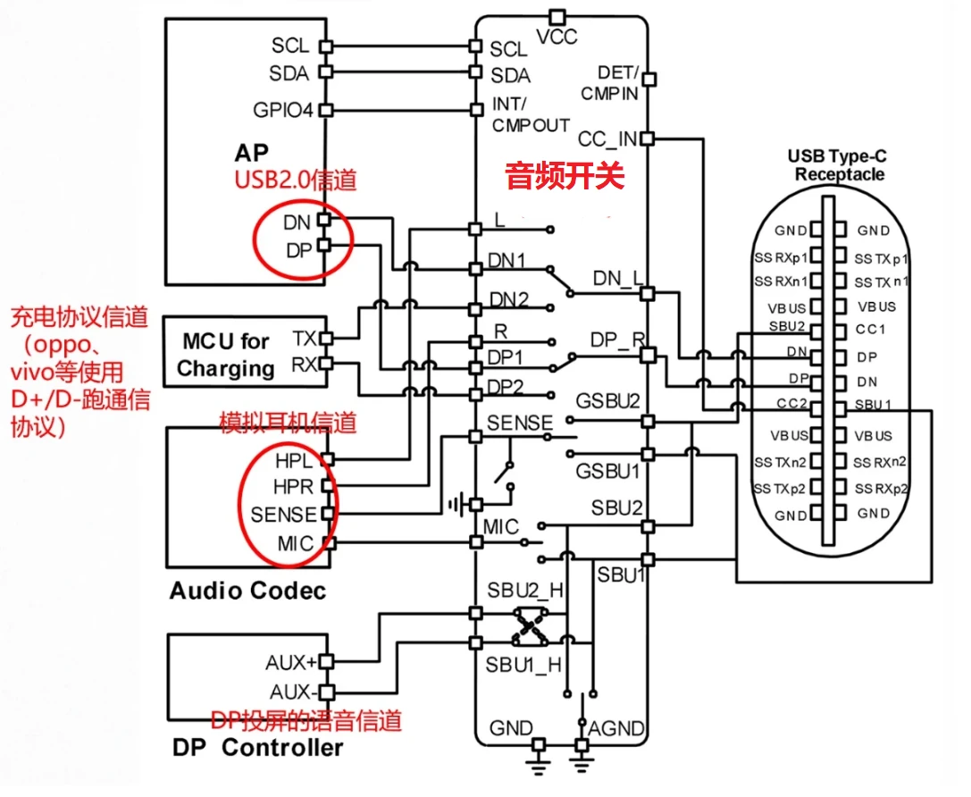 现代手机接口越来越精简,Type-C接口像一肩挑的牛马一样,要承担充电、数据传输、音频输出、麦克风输入等多种功能。而音频开关可以根据插入的设备类型,比如是数字耳机还是模拟耳机,模拟耳机的类型(三段式还是四段式等),正确地将音频信号通路连接到相应的引脚。