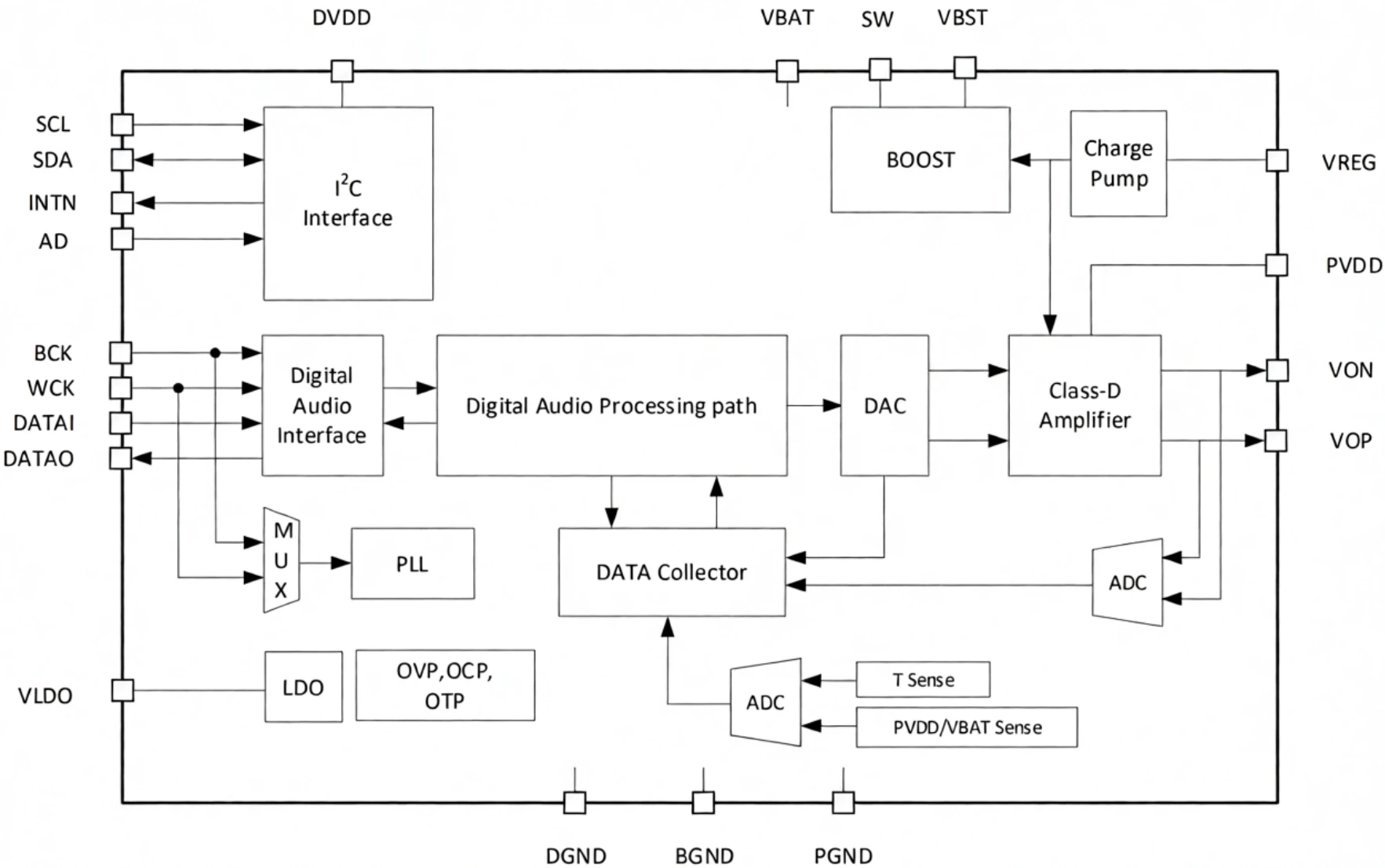 以艾为的Smart PA内部框图为例,可以略微探知其功能,后续再写一篇文章详细解释其功能。