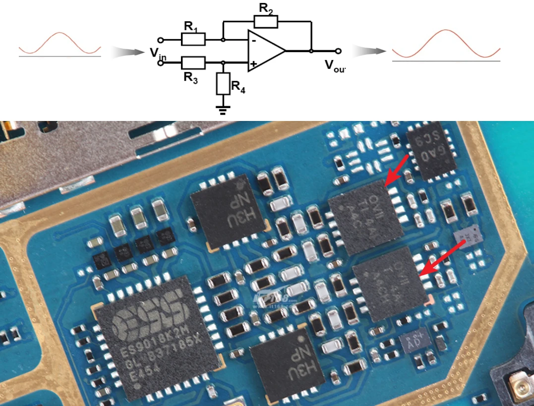 如下图,为小米Note Hi-Fi手机拆解图,内部耳放使用了TI的OPA1612芯片。