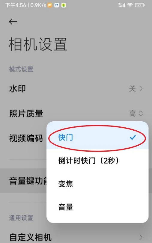 在手机系统中,我们可以音量键配置为特定的“按键事件”,比如快门功能。如下图,以小米手机为例,可以设置音量键功能为快门,即拍照功能。