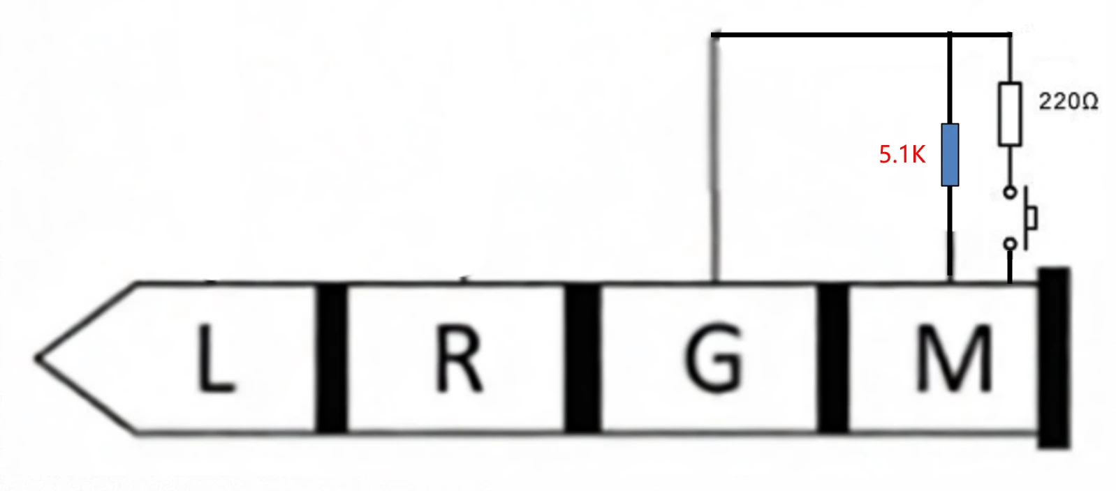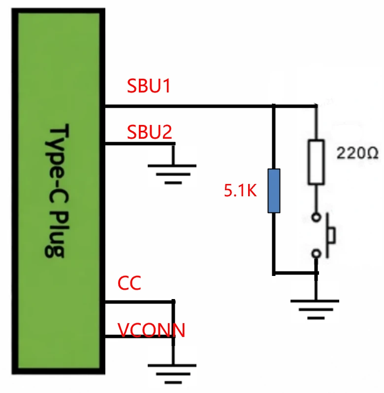 如果手机没有3.5mm耳机孔,只有Type-C口,但支持模拟耳机,我们可以使用一个Type-C公头,再将CC、VCONN对地短路,然后用5.1K电阻取代话筒,然后并上220欧姆电阻和一个按键。