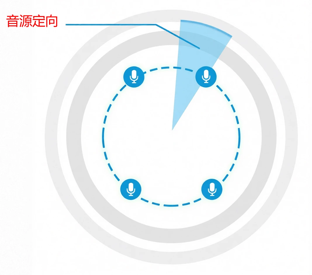知晓声源的方向后,可以做很多有趣的功能,比如在会议室有多人线上开会的场景,利用音源定向,协同摄像头聚焦于说话的人,同时捕捉他的表情和声音,提升会议体验。